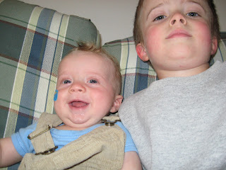 Jonas woke up with a scratch on his face and Noah shared his Curious George bandaid with him, he even put it on all by himself.